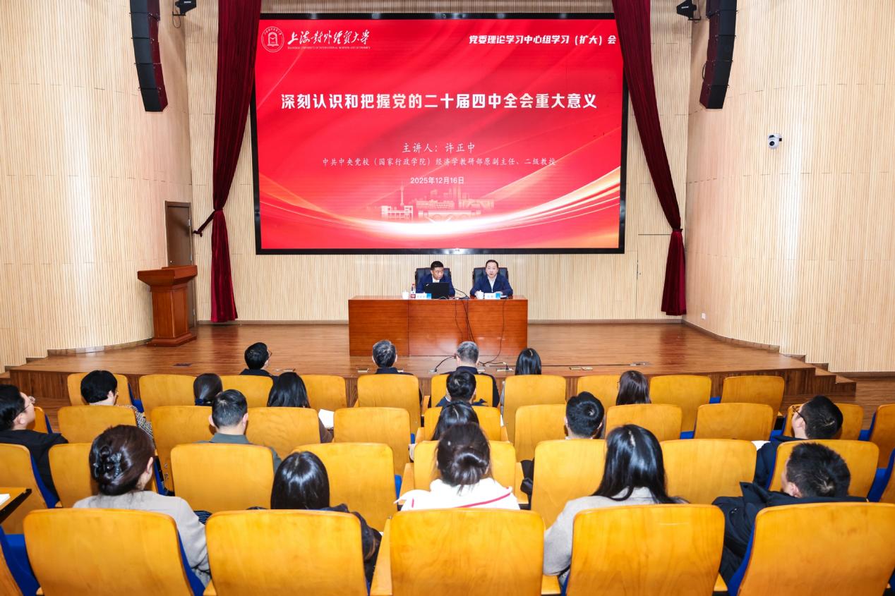 在全校上下深入学习贯彻党的二十届四中全会精神的热潮中,为进一步帮助广大干部教师全面领会和把握全会的重大意义,12月16日下午,学校在松江校区图书馆思源报告厅举行党委理论学习中心组学习(扩大)会,邀请中央党校(国家行政学院)经济学部原副主任许正中教授作主题为“深刻认识和把握党的二十届四中全会重大意义”的专题辅导报告。学校党委理论学习中心组成员、中层领导人员、教工党支部书记、系(专业)主任、各民主党派、统战团体负责人、第九期青年骨干教师培训班学员和机关第二届青年业务骨干培训班学员参加报告会。会议由校党委副书记吴毅主持。