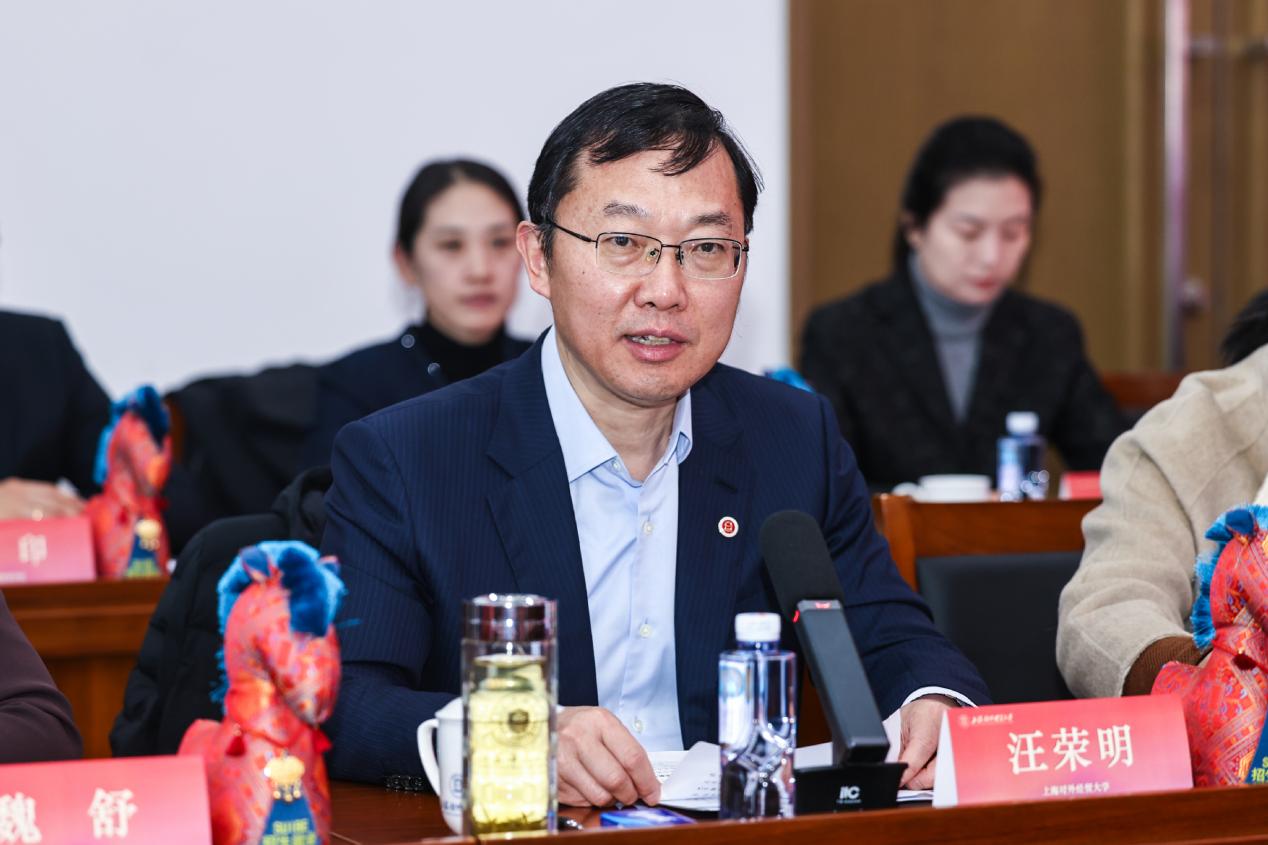 汪荣明致欢迎辞。他向各位嘉宾的拨冗莅临表示热烈欢迎与衷心感谢,并全方位、多层次地介绍了学校近年来在学科建设、人才培养等领域取得的显著进展与丰硕成果。汪校长强调,学校始终坚守“外”“经”“贸”特色优势,紧密贴合产业发展趋势,持续优化人才培养体系,致力于培育适应经济社会发展需求的对外经贸人才。学校深刻认识到校企合作的重要战略意义,期望与各家单位进一步凝聚共识、整合资源,共同探索更为多元、深入的合作模式,携手推动校企协同育人迈向新的高度。