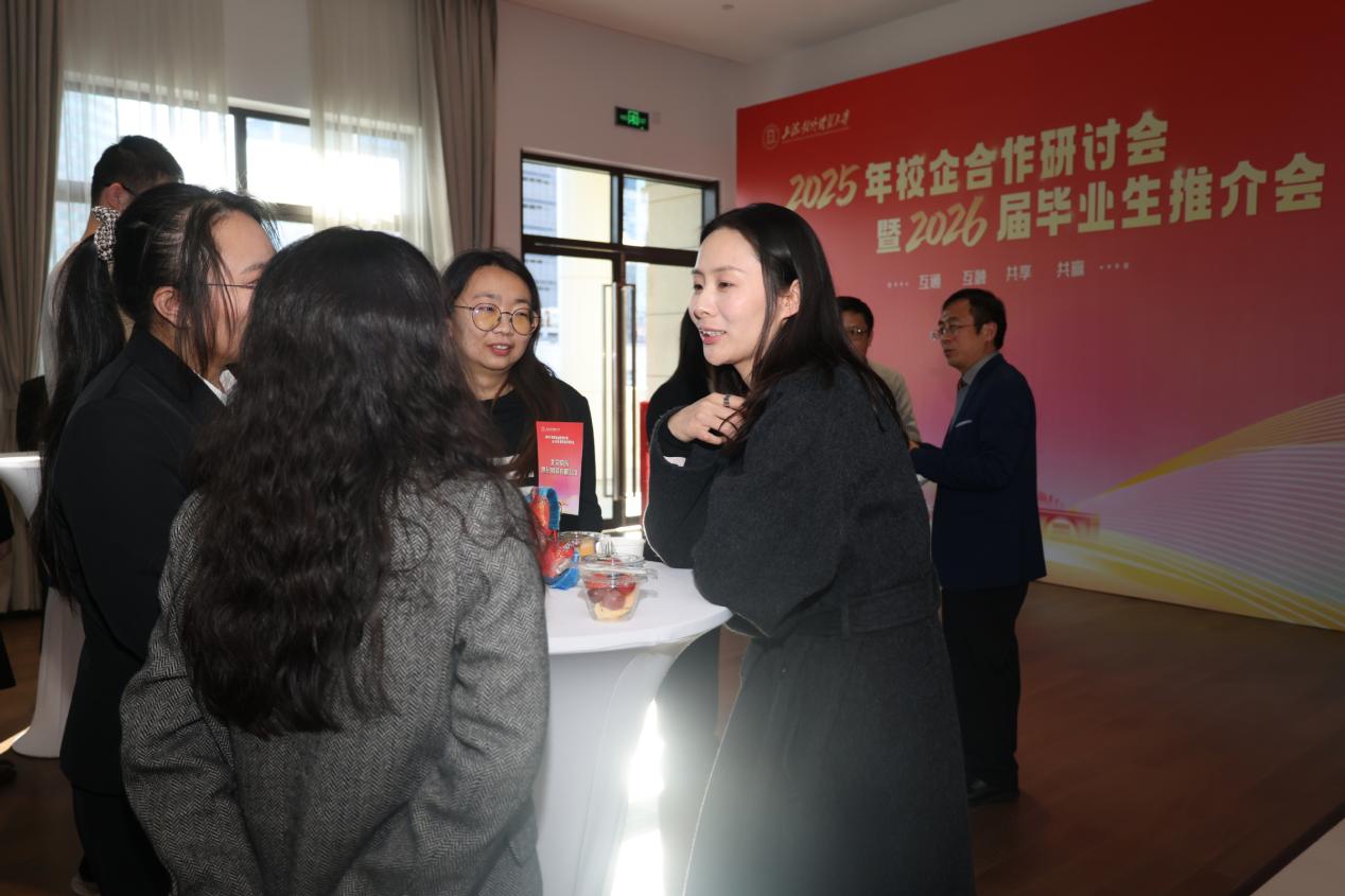 沈艺在总结讲话中对各位企业嘉宾长期以来给予学校人才培养和就业工作的大力支持表示诚挚感谢。她强调,校企合作是推动人才培养提质增效的关键路径,并对下一阶段校企合作提出三点期待:一是以“互通”筑基,共促供需精准匹配;二是以“互融”提质,共育实战型人才;三是以“共享”聚力,共创发展新生态。