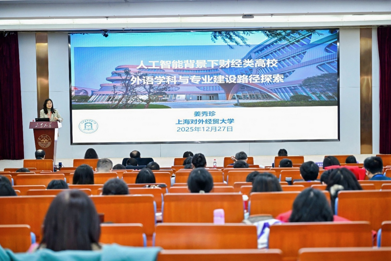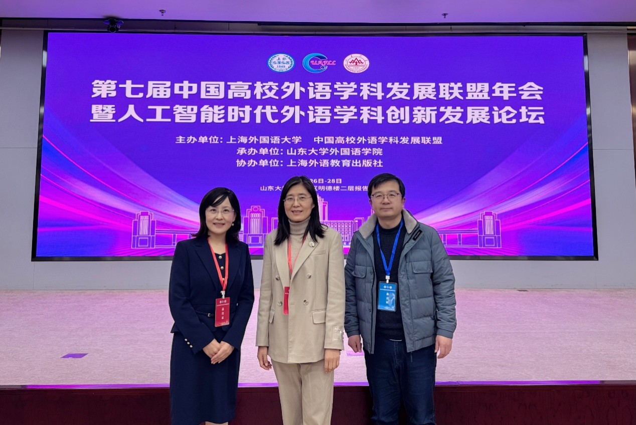 12月26日至28日,第七届中国高校外语学科发展联盟年会暨人工智能时代外语学科创新发展论坛在山东大学召开。来自全国160余所院校200余位外语学科专家学者汇聚一堂,围绕人工智能时代外语学科的创新发展路径开展了深入的探讨。姜秀珍副校长出席年会并作了题为“人工智能背景下财经类高校外语学科与专业建设路径探索”主旨发言。