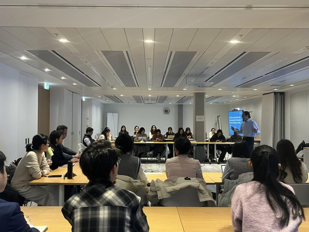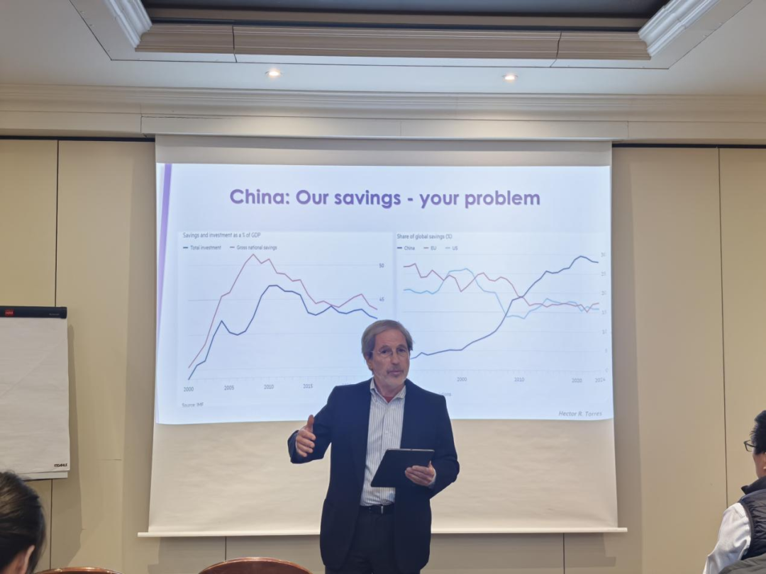在国际货币基金组织(IMF)参访时,IMF前执行主任HectorTorres以“全球经济与货币稳定:从规则到交易,对IMF和WTO的影响”为题进行讲解。他从多边机构运行逻辑切入,详细介绍IMF与WTO作为全球经济治理核心平台的设立背景、主要职能,以及当前在全球化遭遇逆流、地缘政治冲突加剧背景下面临的发展困境与关键矛盾,全面展现了全球经济治理体系的复杂性与改革紧迫性。师生们就平衡发达国家与新兴经济体的话语权、IMF融资支持如何助力发展中国家应对债务压力等问题与Hector教授互动交流。