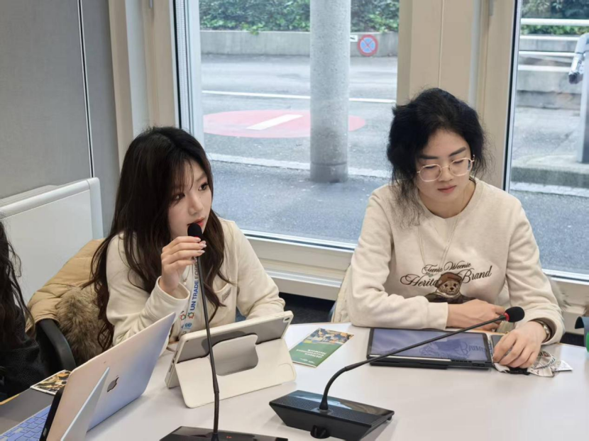 研学团在联合国国际贸易中心(ITC)参访交流时,ITC“她贸易”项目(ShetradesInitiative)官员以“女性赋能贸易倡议”为主题,详细介绍了性别平等的价值,重点阐释了数字贸易、绿色转型、南南贸易与增值三大核心领域。师生们围绕贸易枢纽选址、电商平台合作等问题进行交流,进一步明晰了女性参与国际贸易的实践路径。