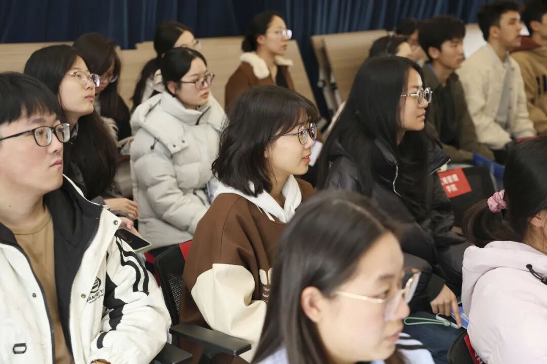 郑刚以“机遇无限的蓝海”“引人入胜的乐土”“乐居宜业的宝地”三句话为核心,向在场师生全面介绍铜陵发展优势。他表示,铜陵作为“中国古铜都,当代铜基地”,产业动能强劲、区位交通优越、平台资源丰富,科创能力位居全国前列;这座江南小城山水秀美、人文荟萃,生态优良,宜居宜业也宜游;铜陵更求才若渴、爱才惜才,构建了全方位人才政策体系,打造“一张床、一间房、一套房”安居保障,配以高效贴心的人才服务和完善公共配套,让人才安居乐业、干事创业。他诚挚邀请我校学子走进铜陵、选择铜陵,共赴“铜”行未来的约定,开启青春与城市双向奔赴的新旅途。