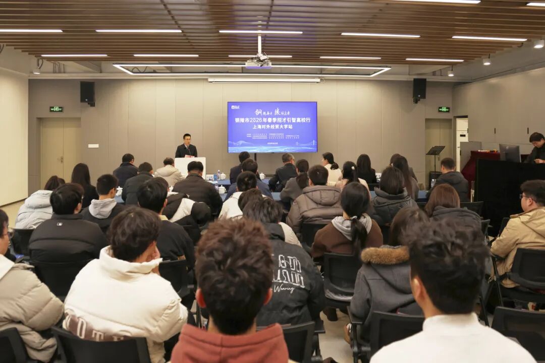 宣讲会上,都斌作铜陵市人才政策推介,详细解读“人才强市10条”等升级政策,全面介绍覆盖各学历、全就业发展阶段的人才支持举措。