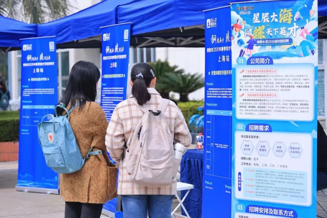 宣讲会后,校地双方领导共同走访了校内专场招聘会。此次招聘会,铜陵市精心挑选当地10家重点企业参加线下招聘活动,并且筛选21家优质企业提供线上岗位供给,为毕业生带来了近200个优质岗位需求,涵盖包括经贸、管理、财务、外语等多个与我校高度匹配的专业。