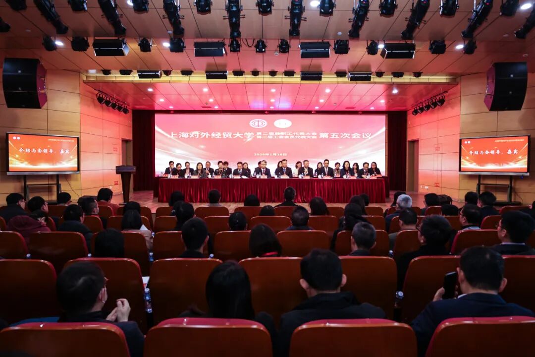 1月16日,上海对外经贸大学第二届教职工代表大会暨工会会员代表大会第五次会议在长宁校区举行。校党委书记祁明,校长汪荣明,校党委副书记、工会主席吴毅,校党委副书记、纪委书记章益国,党委副书记、副校长沈艺,副校长徐永林、副校长姜秀珍出席会议,上经贸大附属松江实验学校党总支书记张辉应邀出席。学校教代会暨工代会99名正式代表出席会议。会议还邀请各单位、部门负责同志,各民主党派基层组织负责人、工会经审委委员等列席会议。