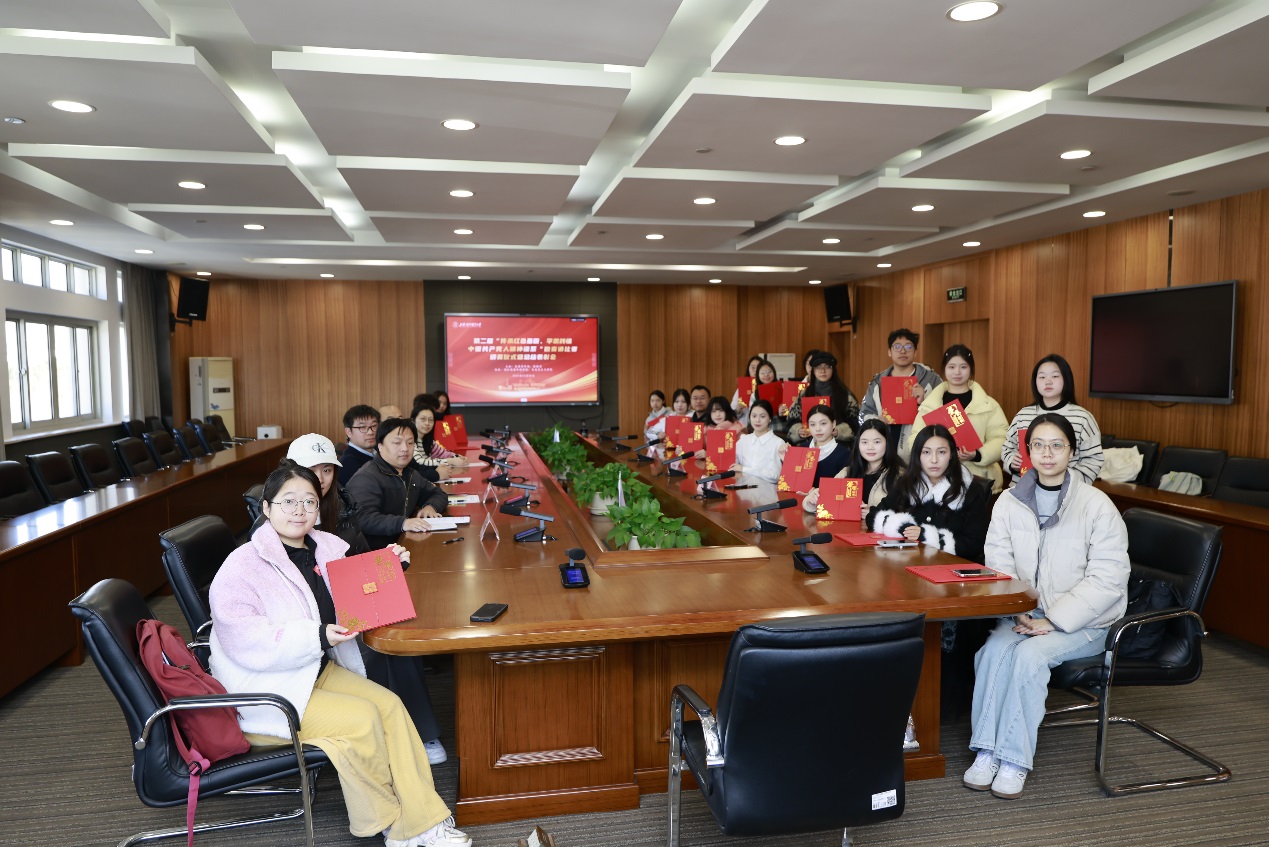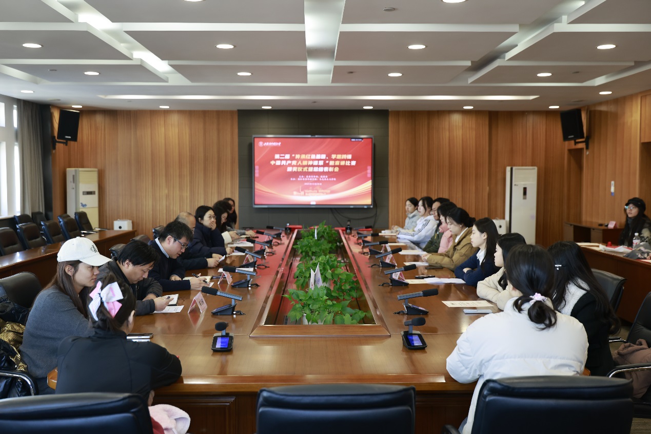 12月26日下午,第二届“传承红色基因、学思践悟中国共产党人精神谱系”微宣讲比赛颁奖仪式暨总结表彰会在松江校区德政楼317会议室举行。校党委宣传部副部长张帅、校团委书记司徒力云、马克思主义学院和国际商务外语学院师生代表以及微宣讲比赛获奖学生参加总结表彰会。