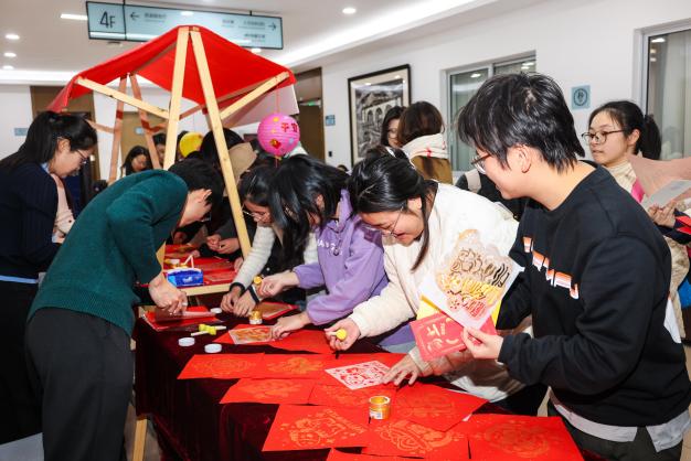 演出开始前举行了非遗文化体验活动,师生们亲手学习制作了传统拓印、吉祥红包与喜庆年画,在感受传统非遗手工乐趣的同时,也把年味与心意带回了家。