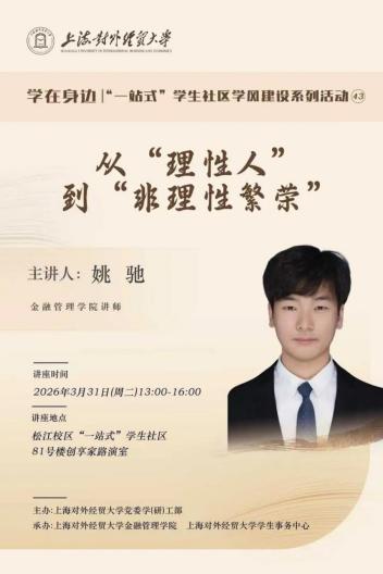 金融管理学院姚驰博士以经济学中经典的“理性人”假设为切入点,深入浅出地梳理了该假设的理论根基与现实局限。他结合行为经济学与金融学的经典案例,生动阐释了情绪、认知偏差与群体行为如何在市场中交织出“非理性”的浪潮。他指出,理解非理性并非为了否定理性,而是在理性框架之外,增添一份对人性的深刻觉察与敬畏。讲座内容兼具理论深度与现实温度,引发了同学们的强烈共鸣,现场互动频繁,讨论氛围热烈。