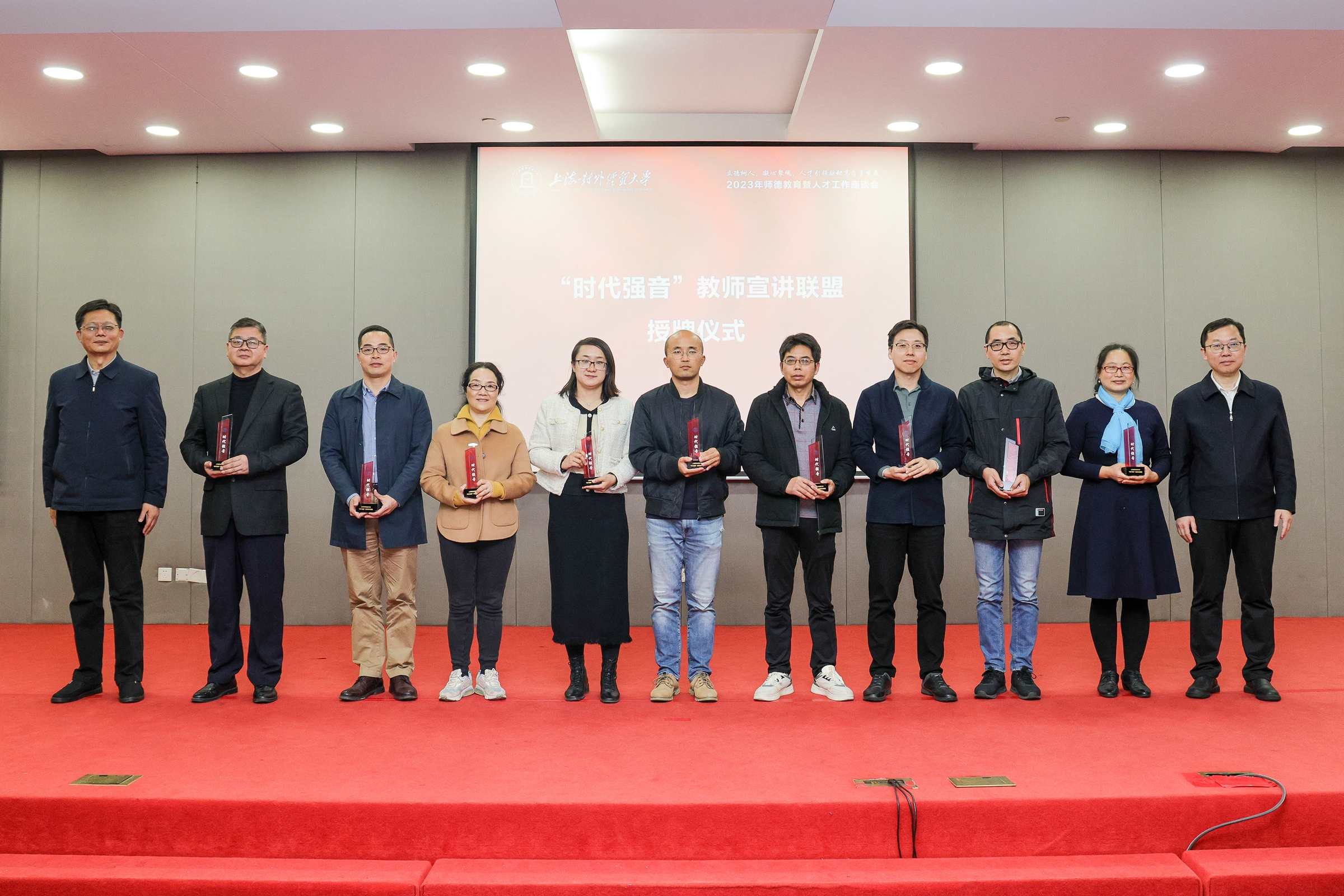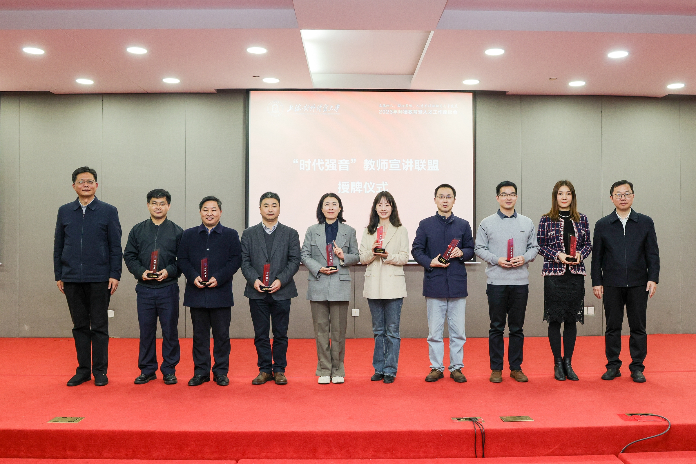 为充分发挥广大教师优势特长,凝聚起同思同研、同讲同行宣讲合力,学校成立了“时代强音”教师宣讲联盟。会上,殷耀、汪荣明共同为17家联盟成员单位授牌。