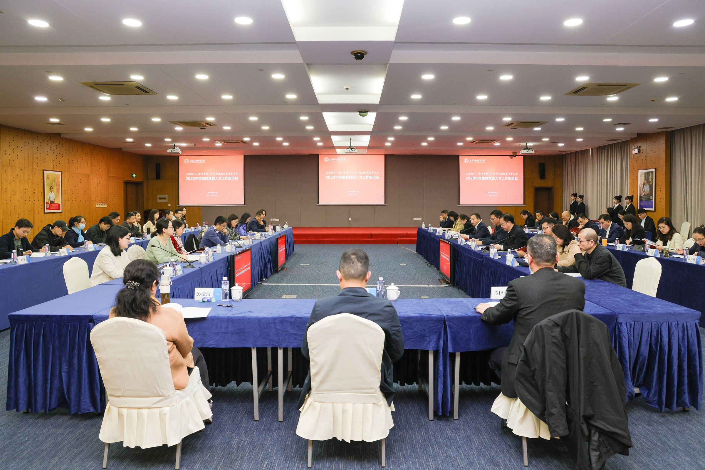为深入学习贯彻党的二十大精神,充分发挥人才在坚守为党育人、为国育才,弘扬高尚师德师风中的重要作用,学校于3月21日召开2023年师德教育暨人才工作座谈会。本次会议以“立德树人,凝心聚魂,人才引领驱动高质量发展”为主题,校党委书记殷耀、校长汪荣明出席会议,各单位、相关职能部门负责人,“时代强音”教师宣讲联盟成员单位代表、学校教师代表等参加会议。会议由校党委副书记吴毅主持。