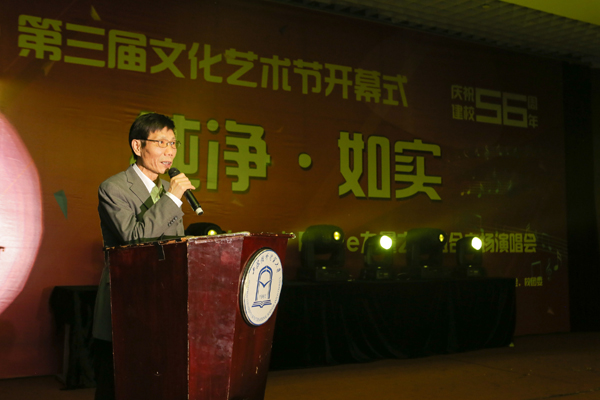 楼军江在致辞中指出,第三届文化艺术节以展才艺风采、奏青春乐章、普发展新篇为主题,旨在进一步丰富师生校园文化生活,不断深化中国梦和社会主义核心价值观宣传教育。举精神之旗、立精神支柱、建精神家园,离不开文化艺术。校园文化的魅力体现在外表的绚丽璀璨,体现在内在的充实感受,追求思想性、艺术性、观赏性的有机统一,组合有热度、有道德、有温度的文艺作品,彰显信仰之美、崇高之美,不拘一格、不形一态、不定一尊,校园文化内含当代校园生活的底蕴,传承学校传统文化的血脉。涵养精气神、唱响主旋律是校园文化的不竭动力。他强调要通过校园文化建设,着力增强师生的文化自觉和文化自信,不断凝聚师生、团结师生、激励师生,努力打造具有上经贸大特色、广大师生员工校友高度认同的文化家园,为建设高水平、国际化、特色鲜明的应用研究型大学提供文化动力。