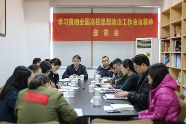 1219日下午,学工部在乐群楼318会议室召开座谈会,学习贯彻全国高校思想政治工作会议精神。校党委副书记、副校长祁明出席会议并讲话,学工部、团委负责人、各学院党委(总支)副书记参加座谈。会议由学工部部长严大龙主持。