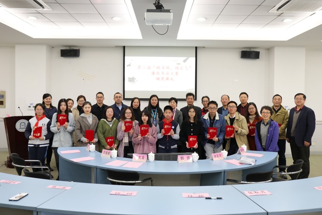 11月19日中午,学校第二届“树清风、扬正气”廉政书法大赛颁奖典礼在图文信息大楼530会议室举行。校党委副书记、纪委书记许玫,附属松江实验学校党支部书记姚红贤,松江区书法家协会副秘书长宋远平,校党委办公室主任、党委统战部部长郭茜,党委宣传部部长严大龙,高等教育研究所所长宋彩萍,校工会主席郭新顺,党委组织部副部长范登峰,校团委副书记缪韵笛出席典礼。典礼由纪委副书记、监察处处长饶芸燕主持。