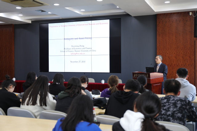 聘任仪式结束后,张顺明教授作了题为《暧昧性与资产定价》的学术报告,报告由金融管理学院院长凌婕主持。张教授阐述了暧昧性的经济学来源,解释了风险与暧昧性之间的区别,并说明奈特不确定性与暧昧性的关系,以及暧昧厌恶的表现定理。他介绍了暧昧性在资产定价理论中的最新研究进展。张顺明教授的报告高屋建瓴,旁征博引,见解新颖独到,为在场师生带来了一场丰盛的学术盛宴,使在座师生深受启发,获益匪浅。