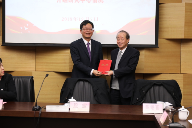 仪式上还举行了研究中心专家顾问、特聘研究员的聘任仪式,殷耀向专家顾问代表陈锡喜教授颁发聘书,许玫向研究中心特聘研究员代表李冉、何益忠、王朝科三位教授颁发聘书。陈锡喜、李冉分别作了发言。陈锡喜表示,我校研究中心筹建具有良好的基础,希望研究中心秉持“资政育人”的使命,在理论研究、人才培养、决策咨询三方面作出贡献。李冉希望研究中心发挥学校特色优势,打造成为开放合作的重要平台,他们将会积极助力研究中心发展。