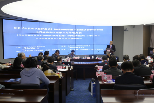 1123日,由上海市人民对外友好协会和我校主办,三井住友海上火灾保险(中国)有限公司协办,主题为中日经济合作与第三方市场开发的纪念《中日和平友好条约》缔结40周年暨中日经济合作研讨会在我校举行