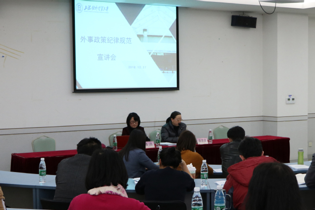 1227日下午,外事处在信息楼530会议室召开2018外事政策纪律规范宣讲会。副校长陈洁出席会议,学校各部门及单位50多位外事工作相关领导和工作人员以及外事处全体工作人员,参加会议。会议由外事处处长邹囡囡主持。