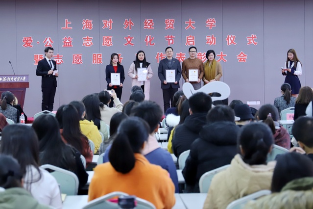 去年,我校共开展了志愿服务100余项,超过12000人次参与到志愿服务中志愿者本着“奉献、友爱、互助、进步”的志愿者精神,服务大局不断拓新,向外界充分展示了上经贸大学子的青春风采。在志愿服务评选中,国际经贸学院团委等5个团队获得了志愿服务工作优秀组织奖。在优秀志愿服务项目评选中,共有10个来自学院团委及校内其他公益组织的项目获得该奖项。在先进个人评选中,陆哲涵等10位同学获得十大杰出志愿者称号,杨佳莹等98位同学获得优秀志愿者称号。会上,刘素贞为获奖代表颁奖。