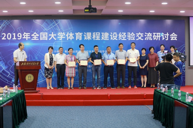 7月5 -8日,2019年全国大学体育课程建设经验交流研讨会在松江校区图文信息楼526会议室举行。校党委副书记、纪委书记许玫,上海市大学生体育协会会长薛明扬,上海市学生活动管理中心副主任、上海市大学生体育协会秘书长盛炯,华东师范大学体育与健康学院党委书记汪晓赞以及全国部分高校体育部的领导出席会议。来自全国40余所高校的130多名体育教育工作者参加会议。会议由校体育部主任崔树林主持。