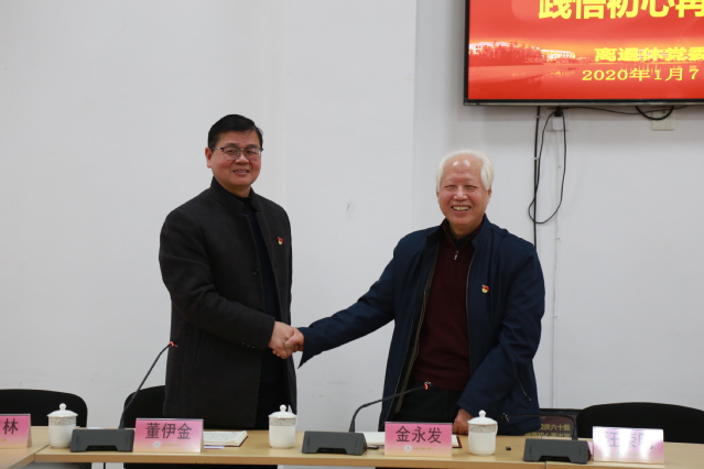 作为新老交替环节,金永发就2019年党建工作做了总结。他从“学”习近平总书记重要论述,“看”烈士陵园、古北市民中心,“听”十九届四中全会报告,“讲”形势报告、党史国史校史,“做”“我和我的祖国”系列活动五个方面回顾了一年的收获和体会。最后,金永发以上联:旧桃书写国家繁荣昌盛,下联:新符画出贸大锦绣前程,横批:奋斗新时代的自创对联,感谢同志们对他18年担任总支工作的支持,祝贺中共上海对外经贸大学离退休委员会成立。