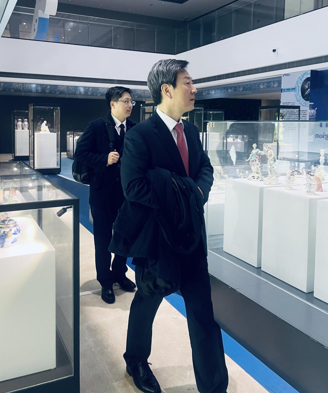 访问期间,郑胜列一行参观了学校WTO亚太培训中心、国际经贸创新与治理研究院,以及博物馆“东风西渐”展览。