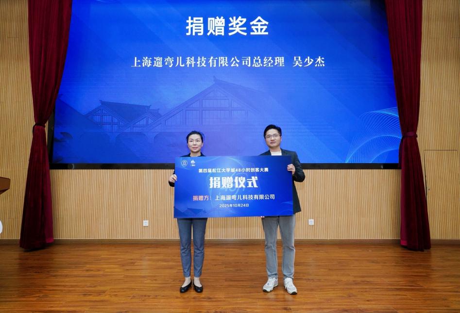 为强化赛事专业支撑,现场举行了“松江大学城创新创业专家导师团”聘任仪式,费薇、缪韵笛为专家导师代表颁发聘书。上海交通大学学生创新中心VR/AR实验室主任赵伟明作为导师代表发言,承诺将发挥专业优势,为青年创客提供技术指导、项目打磨等全链条支持,助力创新项目健康成长。上海遛弯儿科技有限公司作为协办单位,现场向大赛承办方捐赠奖金,公司总经理吴少杰表示,将持续关注大学生创新创业工作,为科创人才培育提供社会力量支持。