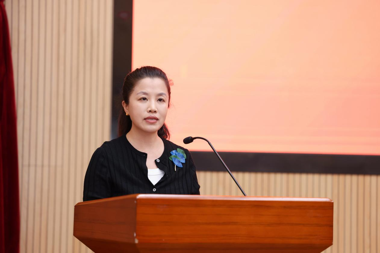 工商管理学院教师左鹏作为优秀指导教师代表发言。她回顾了与同学们一同参与万企项目的宝贵经历,对支持项目的领导嘉宾、企业单位和师生表示感谢。她分享了调研中师生共同学习、协作探索的过程,并呼吁更多教师携手带领学生在服务国家发展中成长成才。