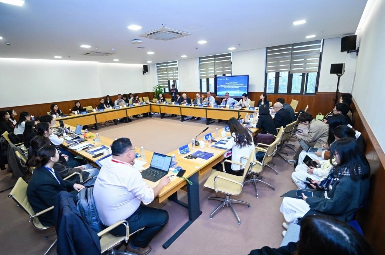 张向晨代表世界贸易组织在开幕式上致辞。他指出,世贸组织已经迈过而立之年,面临全球经济放缓、新关税政策冲击及规则滞后亟需改革等多重挑战。他强调,将于明年举行的第14届世贸组织部长级会议是推动改革的关键契机,核心议题包括决策机制改革与发展议题,特别是特殊和差别待遇问题。他特别肯定了中国宣布不再寻求新的特殊和差别待遇的决定,认为这彰显了中国致力于构建更加公平的全球贸易体系,并支持世贸组织改革的立场。此外,人工智能正成为全球贸易的新增长点,《2025年世界贸易报告》呼吁通过弥合数字鸿沟、加强监管一致性等措施实现人工智能更具包容性。目前世贸组织成员推动《电子商务协定》稳定文本达成,以促进发展中经济体参与数字贸易。最后,他感谢上海对外经贸大学作为世贸组织教席单位及世贸组织亚太区域贸易政策课程(RTPC)培训合作伙伴,为全球经贸治理研究与人才培养作出的重要贡献。