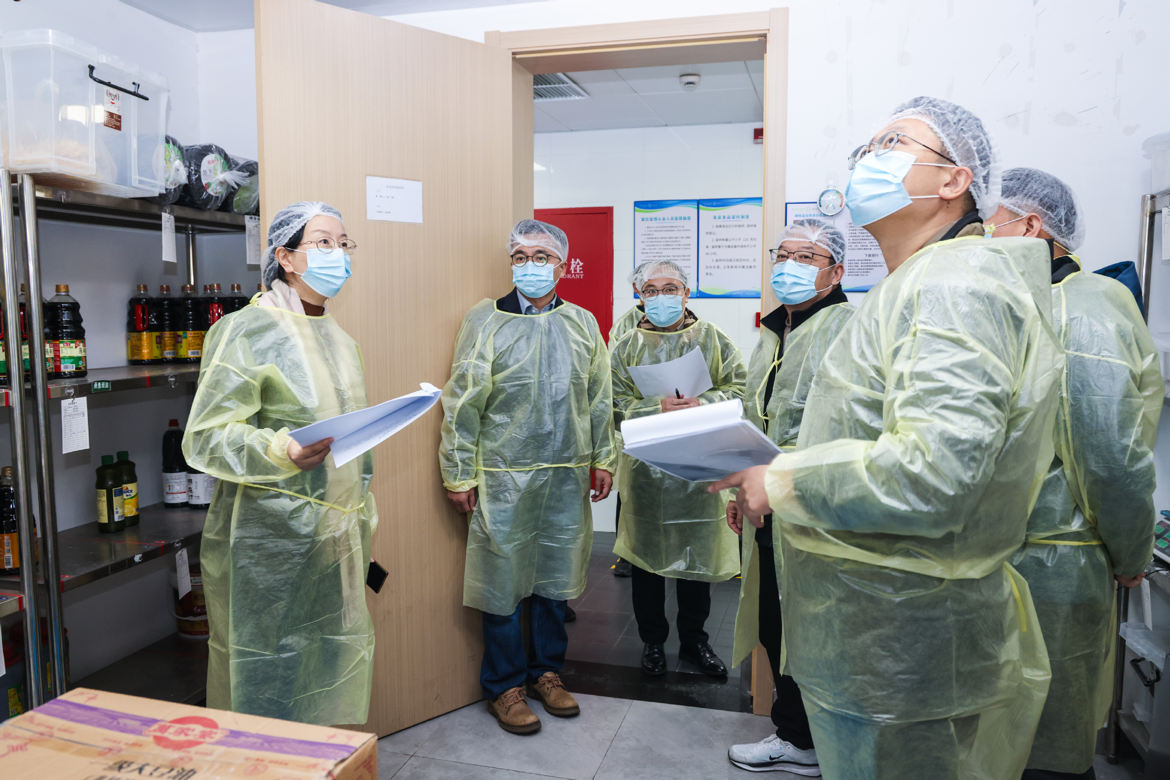 检查组一行先后深入学生食堂、配电间、电动车棚、图文信息楼大修工地、学生社区等重点区域。在食堂,核查食材采购、加工消毒、环境卫生整治及燃气使用安全等情况,要求严把食品质量关;在配电间,检查设备运行、线路规范等,要求强化日常巡检与防寒防火;在电动车棚,整治违规停放充电问题,要求增设警示标识、加强巡查;在大修工地,排查施工防护、临时用电等环节,要强化冬季施工安全意识,严格规范施工操作流程;在学生社区,检查组深入学生宿舍,查看了冬季用电安全、消防安全及宿舍卫生情况,要求引导学生增强冬季安全防范意识,自觉遵守宿舍安全管理规定,注意用电安全,共同营造安全、整洁、文明的住宿环境。检查组一行最后来到闵行校区,重点检查了房屋修缮、绿化养护等环境改造工程情况,要求做好防寒、防潮、防火工作,确保校园环境安全。