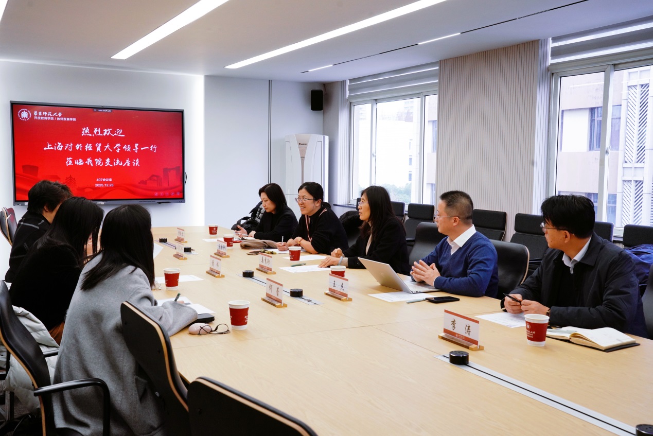 为学习借鉴先进经验,推动我校继续教育事业创新与发展,12月23日,姜秀珍副校长率队赴华东师范大学开展专题调研。华东师范大学终身教育处谢炜副处长(主持工作)、开放教育学院/教师发展学院闫寒冰院长热情接待了调研组一行,双方围绕新时代终身教育的理念创新、体系建设、数字化转型及管理模式等议题进行了深入交流与探讨。