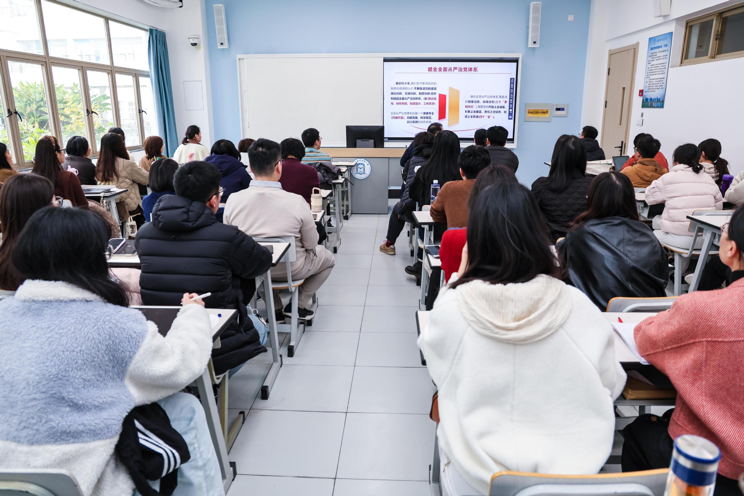 为深入学习贯彻习近平新时代中国特色社会主义思想和党的二十届四中全会精神,引导党员把习近平总书记关于党的建设的重要思想进一步学深悟透、融会贯通,12月23日下午,学校举行党员基本培训2025年下半年第二次集中大课。中央党校(国家行政学院)党的建设教研部副主任祝灵君教授作“深入学习贯彻习近平总书记关于党的建设的重要思想”专题报告。学校全体师生党员在图书馆思源报告厅主会场和松江、长宁17个分会场听取报告。市教卫工作党委组织干部处有关同志一同参训。校党委副书记吴毅主持并讲话。