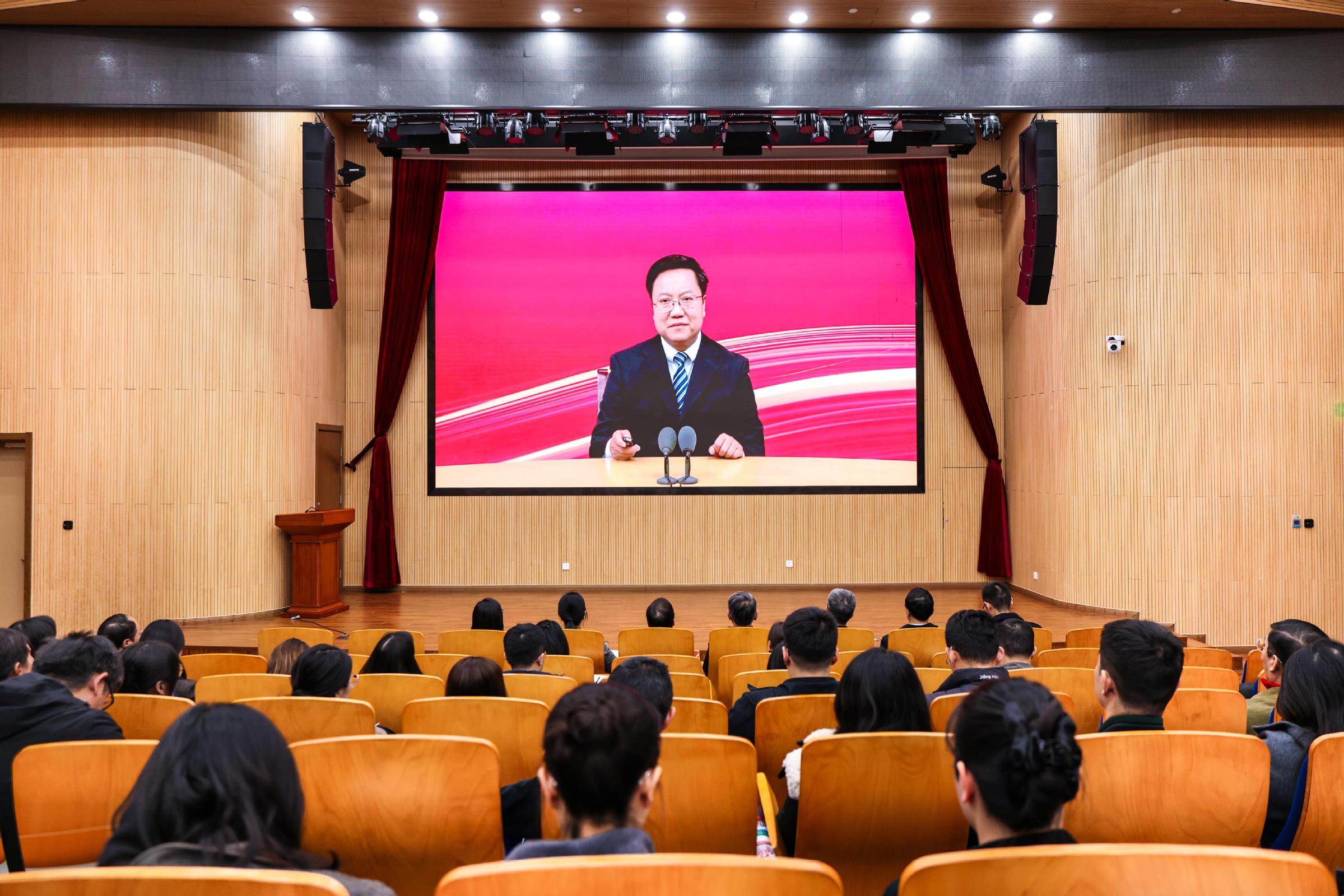 报告结束后,吴毅向师生提出三点希望:一是筑牢思想根基,在学深悟透上持续下功夫。全校各级党组织和全体党员要以集中大课为契机,强化理论武装,深刻领悟“两个确立”的决定性意义,增强“四个意识”、坚定“四个自信”、做到“两个维护”。二是坚守初心使命,在践行宗旨上主动求实效。要始终牢记“以人民为中心”这一根本价值取向,立足办学治校使命,在服务师生中彰显先进性和纯洁性。三是强化使命担当,在实干笃行中续写新篇章。自觉把思想和行动统一到党中央决策部署和学校党委工作要求上来,在学校“十五五”规划落地、深化教育综合改革、提升办学质量等核心任务中当好排头兵和先行者,以优良作风推进各项工作务实开展,为学校高质量发展注入强劲动力。