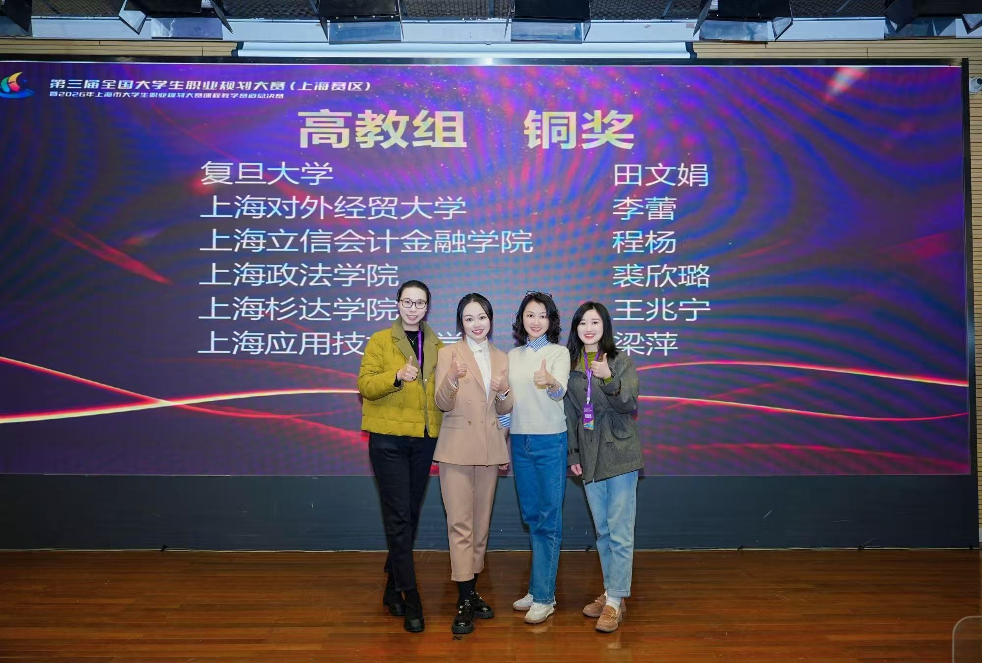 近日,第三届全国大学生职业规划大赛上海市赛圆满落幕。我校师生在激烈角逐中脱颖而出,国际经贸学院2023级本科生王洋洋获成长赛道银奖,国际组织学院(贸易谈判学院)2022级本科生潘超获就业赛道银奖,招生就业处教师李蕾获教学赛道铜奖。