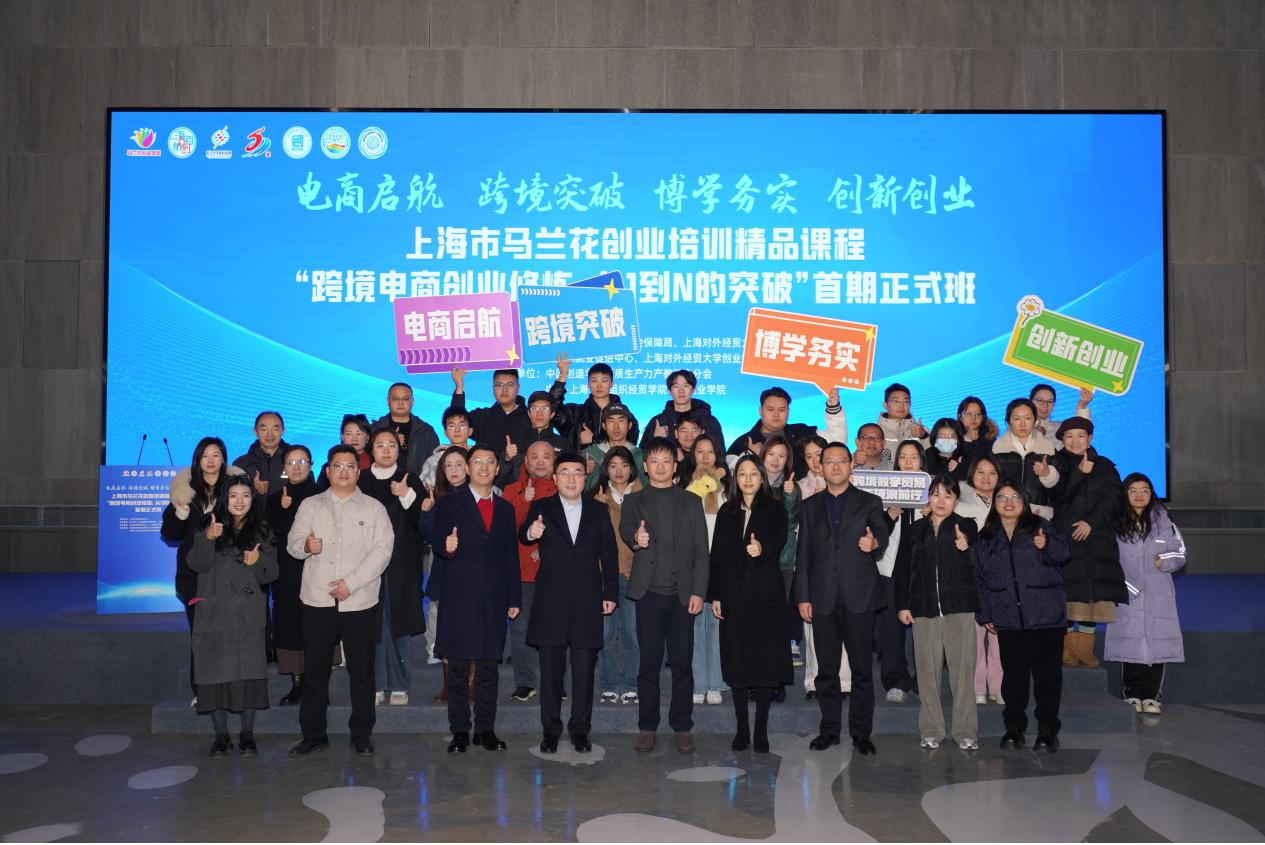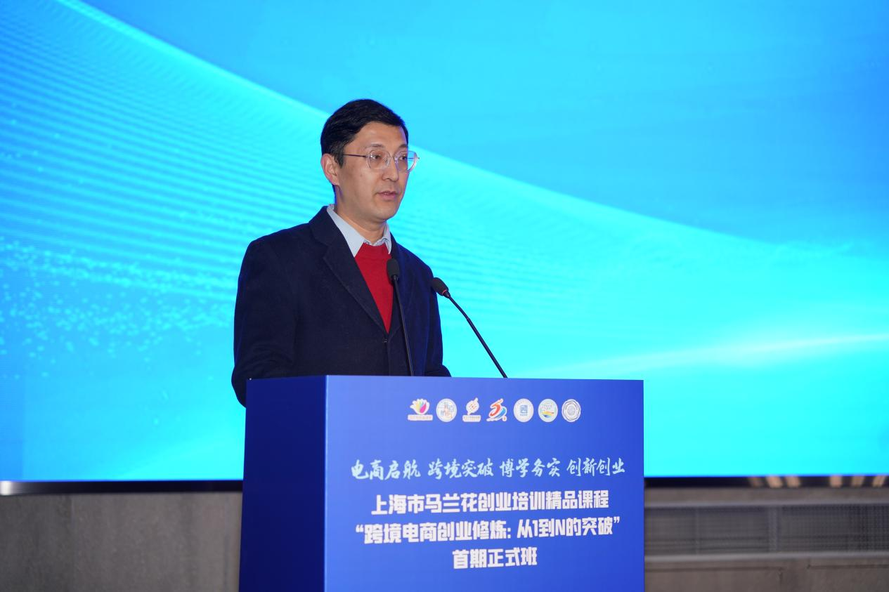 1月8日上午,上海市马兰花创业培训精品课程“跨境电商创业修炼:从1到N的突破”首期正式班开班仪式在松江大学城科创源赋能中心举行。本次培训由上海市就业促进中心指导,松江区人力资源和社会保障局和上海对外经贸大学主办,松江区就业促进中心和上海对外经贸大学创业指导站承办,中国创造学会新质生产力产教融合分会和中国-上海合作组织经贸学院创新创业学院支持。校党委副书记、副校长、创业学院院长沈艺,上海市就业促进中心创业指导处处长蔡东海,上海市松江区人力资源和社会保障局副局长马守亮,上海市松江区就业促进中心主任殷华、副主任彭晓镝、创业指导科科长许华丽,上海对外经贸大学党委学(研)工部部长、学生处处长缪韵笛,创业学院副院长高伟出席开班仪式。仪式由上海对外经贸大学创业学院教师、精品课程讲师李伟铭主持。