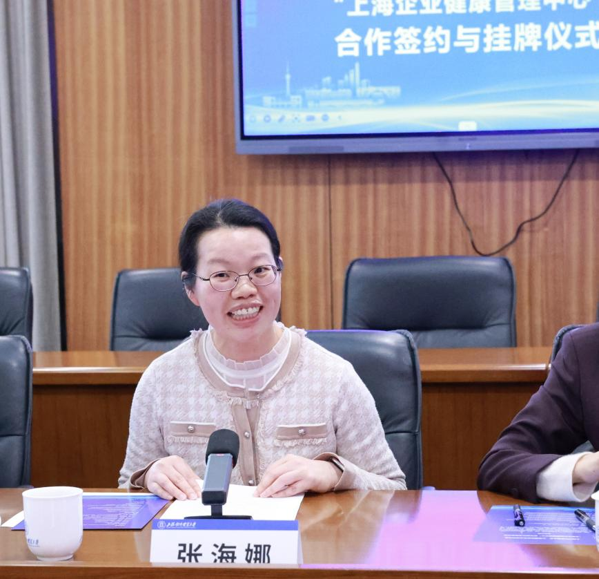 科研处副处长张海娜系统介绍了学校科研工作与智库建设的整体情况。近年来学校在智库建设方面取得了显著成绩,尤其是在服务上海“五个中心”建设方面贡献突出。她表示,此次与上海国际商务法律研究会共建“上海企业健康管理中心”,是学校落实教育综改“重服务、强贡献”导向的实际行动。科研处将充分发挥桥梁纽带作用,推动学校各学科团队与研究会深度联动,促进学科建设与产业发展同频共振。