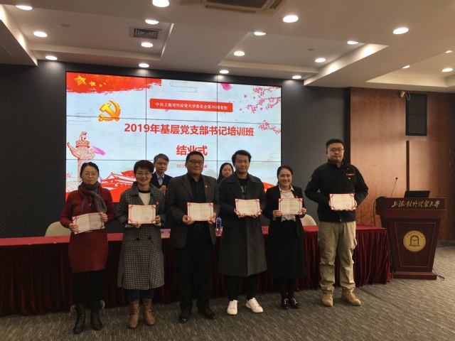 会上,进博会临时党支部为大家展示了“班车微党课”情景剧。教职工党支部书记代表苏庆新,学生党支部书记代表朱红艳、傅豪分别作了交流发言。发言结束后,祁明和郭茜为培训班学员代表颁发了结业证书。