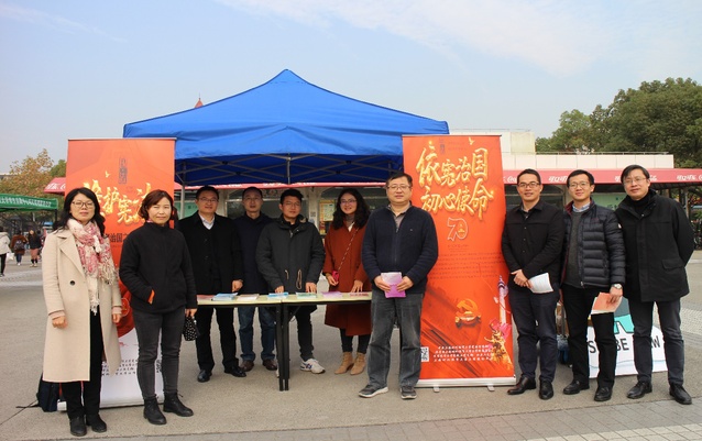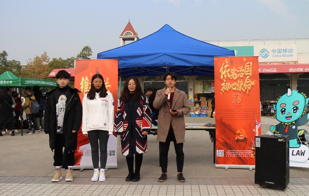 12月4日是我国法定的宪法宣传日,我校法律援助中心、民商经济法学系教工党支部、机关二支部在校园开展“普法进行时”系列活动的普法宣传志愿活动。