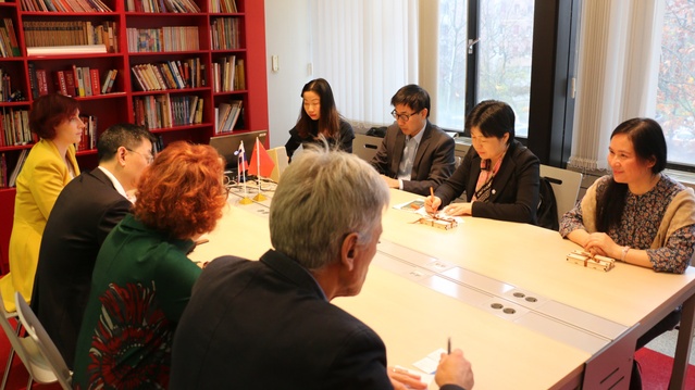 在卢大经济与商务学院,我校代表团与经济与商务学院副院长马斯莫尼戈(Marjan Smonig教授、国际交流办公室负责人、卢大孔子学院外方院长达尼叶拉沃里奇(Danija Voljc)等举行会谈。达尼叶拉沃里奇代表经济与商务学院欢迎代表团来访,她感谢我校对卢大孔院工作的支持,表示正是通过孔院平台,双方大学发展成为战略合作伙伴,并进行了卓有成效的合作。许玫感谢孔院在促进双方大学战略合作方面做出的重要贡献,并对卢大孔院的发展及志愿者教师管理等问题作了回应。