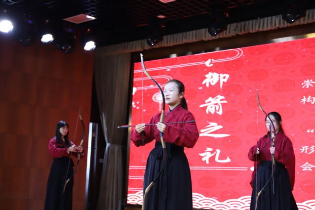 第三篇章“青春之华”,学生社团代表说唱社、弓箭社、创萌社团以《科创达人秀》《御箭之礼》《向阳而生——创萌社团的15年创新历程》,分别展示了2019年校园科创竞赛、文化活动、社团发展等丰硕成果,这也是学校学生社团蒲公英计划建设成效的体现。