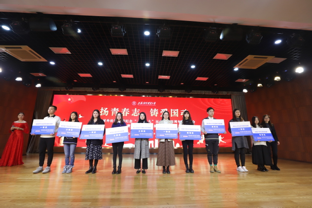大会以社会主义核心价值观校园剧《青春似火》开篇,通过“信念之光”“奋斗之路”“青春之华”三个篇章,展示了进博会志愿者、暑期社会实践团队、学术竞赛团队和学生社团活动的风采,并通过视频展示了2019年大学生暑期社会实践活动成果、2019年校园文化活动成果。与会领导向进博会优秀志愿者、大学生暑期社会实践活动优秀团体和个人、学生竞赛奖学金获奖者、以及其他各类先进集体、个人代表颁发了奖项。