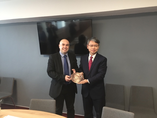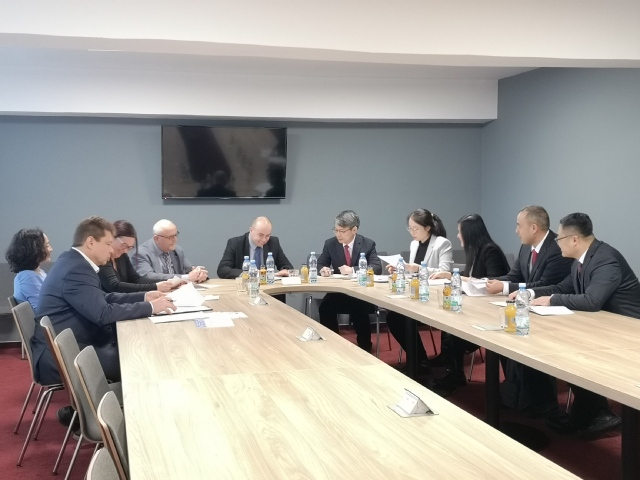在访问捷克布杰约维采商业技术学院期间,代表团与捷方校长马莱克(Marek Vochozka)、副校长简(Jan Vachal)、校理事苏珊娜(Zuzana Rowland)、外事处长阿莱娜(Alena Tikalska)、孔子课堂外方院长弗朗西斯(Frantisek Kotrba)以及我校公派教师屠舒举行了会谈。双方就两校合作的布杰约维采商业技术学院独立孔子课堂成立事宜进行了商谈,对独立孔子课堂执行协议的具体条款进行了补充和说明,并就进一步扩大两校合作进行了深入探讨。在孔子课堂外方院长弗朗西斯(Frantisek Kotrba)的陪同下,代表团参观了孔子课堂教学及办公场地,对场地及未来规划进行了详细讨论。