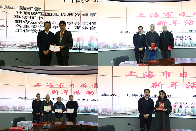 在工作交流环节中,上海市社会科学界联合会梁玉国处长向新一届学会的理事代表、名誉会长、顾问、监事颁发证书。随后,学会会长胡令远汇报了2019年度学会工作。来自《文汇报》等媒体合作伙伴以及上海日本研究交流中心、上海交通大学、复旦大学、同济大学等各主要会员单位的代表也交流了新年工作设想。