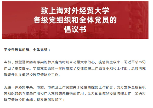 防控“新型冠状病毒感染肺炎”上海对外经贸大学各级党组织和党员在行动