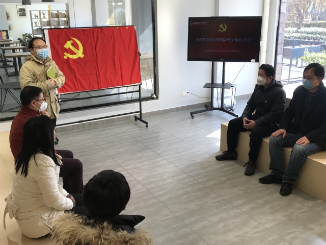 2月5日上午,学校疫情防控学生社区临时党支部在学生社区创享家青年中心举行成立仪式,并开展第一次组织生活会。学工部、社区办、保卫处、社区物业、留宿学生党员等临时党支部成员出席仪式,仪式由临时党支部书记陈颖辉主持。正在社区慰问师生的校党委书记殷耀以一名普通党员的身份一同参加了支部成立仪式