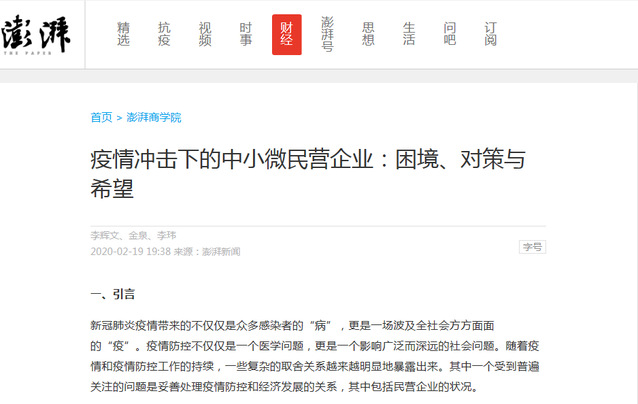 此次新冠肺炎疫情不可避免地会对我国经济社会造成较大冲击,如何有序恢复生产生活秩序、强化“六稳”举措,加大政策调节力度,释放我国发展的巨大潜能,从而实现今年经济社会发展目标任务是当前和今后一个阶段需要思考和研究的重要课题。近期,学校多位教师根据疫情的形势变化和发展,充分发挥自身学科优势,开展疫情相关课题研究,为决策部门建言献策,在媒体和社会上发出上海对外经贸大学学者的声音。