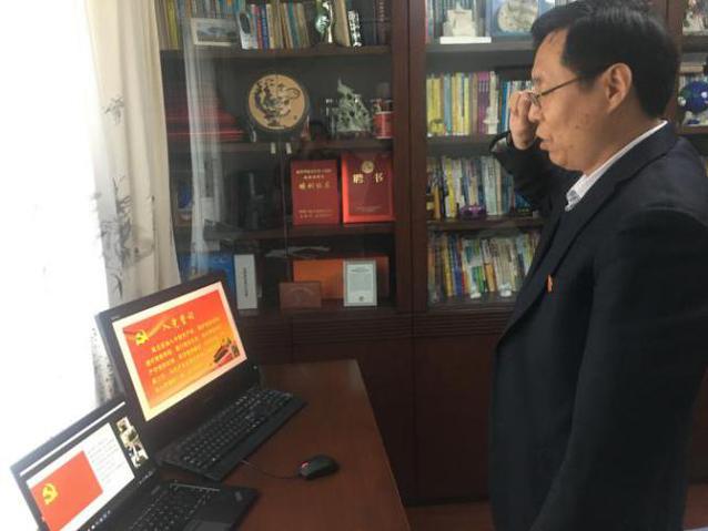 最后,在学院党委副书记、院长刘永辉的带领下,师生党员重温了入党誓词。全体党员在“云端”会集,面向党旗,举起右拳,向党和人民作出庄严承诺。铿锵有力的誓言感染着现场青年学子,警醒和激励党员师生们强化责任担当,不忘初心、牢记使命,不负韶华、只争朝夕,继续积极投身到疫情防控、教学科研和云课堂学习中,为夺取新冠肺炎阻击战的全面胜利而不懈努力,让党旗在防控疫情斗争第一线高高飘扬。