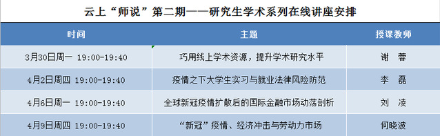 云上“师说”——研究生学术系列后续四场讲座安排已出炉,期待同学们的积极参与。