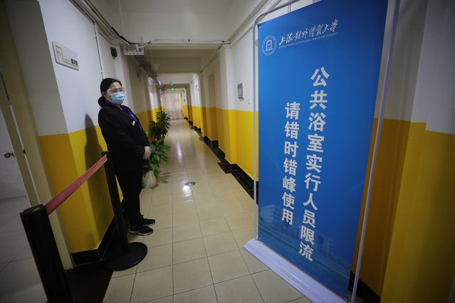 大楼内公共浴室也实行限流、错峰错时、分批使用的方式,保证学生在大楼内生活的安全。公共浴室将延长开放时间,定时清洗消毒,工作人员及时查看浴室内部人员密度,如发现内部人员达到使用阈值,将及时进行限流。