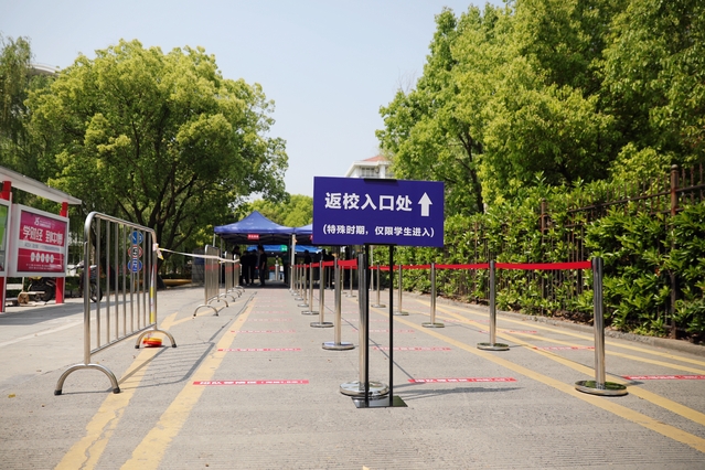 学校学生公寓外拉起长长的一米线,贴好1.5米距离的脚印,学生须有序进入学生宿舍大厅,可以一站式办理登记、领取防疫物资、退宿等手续,方便又快捷。在学生顺利入住后,每位返校学生会发现,学校已为大家准备好贴心防疫件套”:每天一人一个的口罩、一根水银温度计、一瓶免洗洗手液水银温度计使用说明、返校和办理离校流程图、《校园防疫小贴士》等。学校各部门、各学院也在社区主干道设立工作摊位,为同学提供其他便捷的服务。